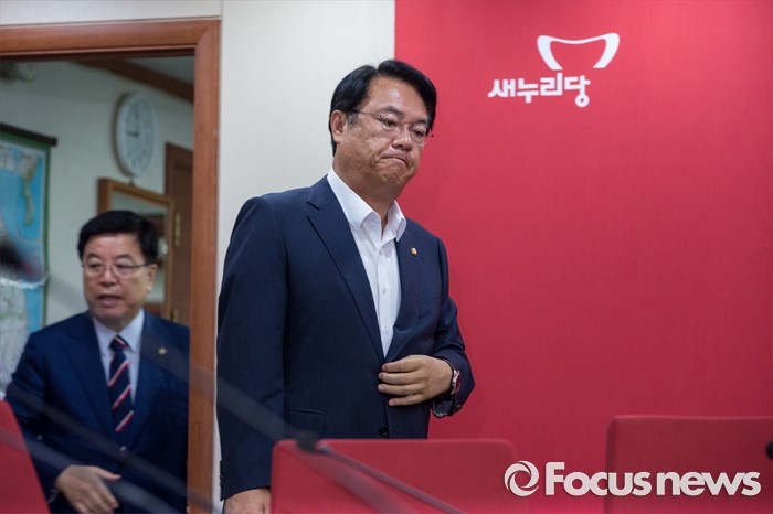 (서울=포커스뉴스) 정진석 새누리당 원내대표가 25일 오전 서울 여의도 새누리당사에서 열린 혁신비상대책위원회의에 참석하기 위해 회의실로 들어서고 있다.