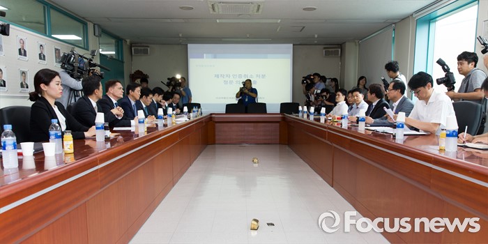 (인천=포커스뉴스) 요하네스 타머 아우디폭스바겐 사장을 비롯한 관계자들이 25일 오전 인천 서구 국립환경과학원에서 열린 차량 인증 조작 관련 환경부 청문회 시작을 기다리고 있다.