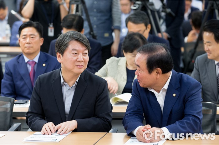 (서울=포커스뉴스) 25일 오전 서울 여의도 국회 의원회관에서 열린 '왜 협력이익배분제 인가?, 협력이익배분제 법제화의 필요성 세미나'에 참석한 안철수(왼쪽) 국민의당 전 대표와 장병완 국회 산업통상자원위원장이 대화하고 있다.