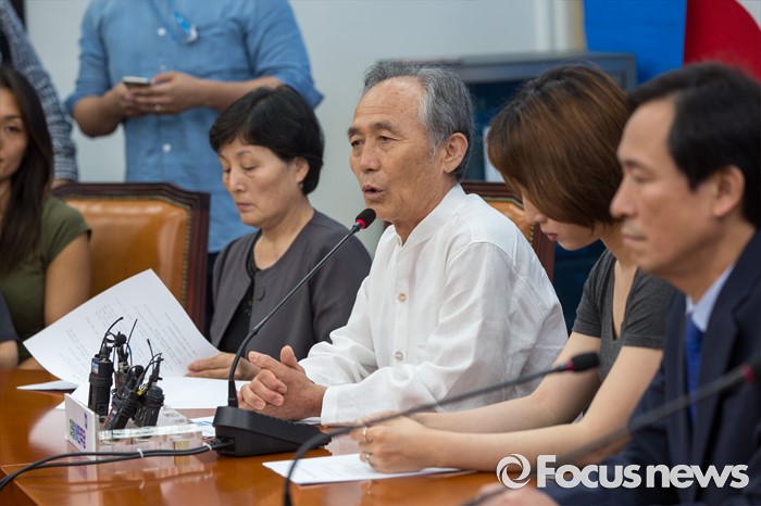 (서울=포커스뉴스) 정현찬 카톨릭농민회 회장이 25일 오전 서울 여의도 국회에서 열린 '더불어민주당-백남기 농민 대책위원회 면담'에 참석해 발언 하고 있다.