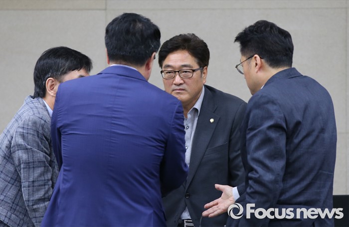 | △ 간사들과 논의하는 우원식 위원장 |