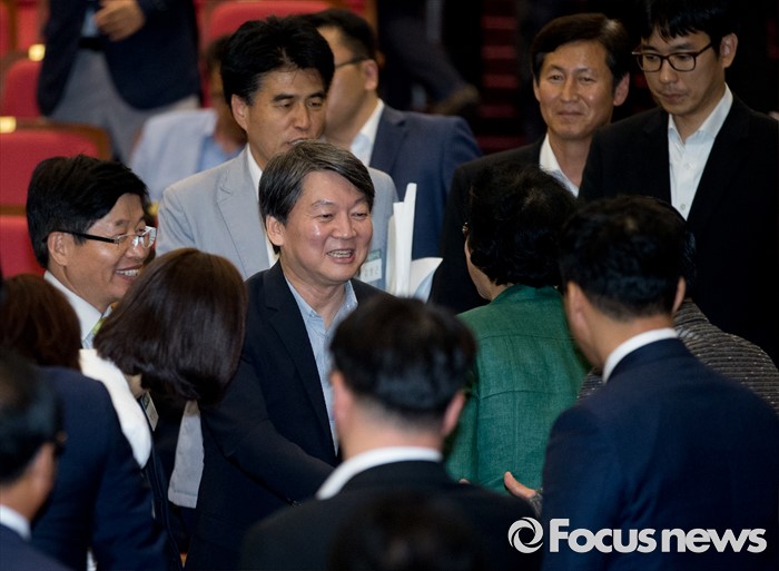 (서울=포커스뉴스) 25일 오후 서울 여의도 국회 의원회관에서 열린 국민의당 지역위원장 임명장 수여식 및 연석회의에 참석한 안철수 전 상임공동대표가 참석자들과 인사하고 있다.