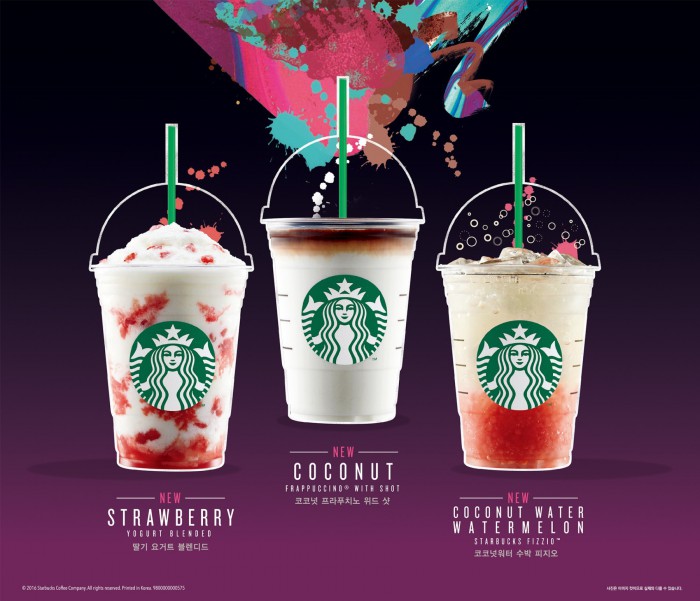 '코코너 프라푸치노 위드 샷'(톨사이즈 6100원)은 코코넛 밀크에 에스프레소 샷이 어우러진 음료다. '코코넛워터 수박 피지오'(톨사이즈 5600원)는 코코넛워터와 바질향을 넣었으며 스파클링과 수박 식감까지 어우러져 청량감을 느낄 수 있다. '딸기 요거트 블렌디드'(톨사이즈 6100원)는 지난해 인기를 끌었던 '딸리 딜라이트 블렌디드'를 요거트 버전으로 업그레이드한 음료다. 저지방 요거트에 무지방 우유, 딸기 과육을 맛볼 수 있는 음료다.