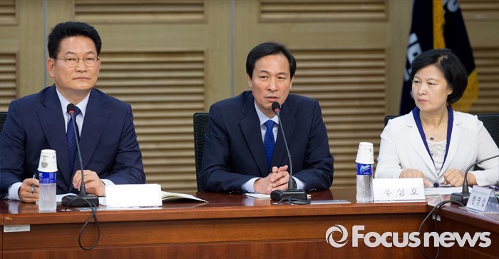 그러면서 "(정 원내대표가) 검찰 스스로 개혁하라고 촉구했는데 지난 10여년간 그렇게 촉구했지만 이뤄진 게 없지 않느냐"며 "비리 추문 양산만 있었다. 검찰의 권력을 분리하는 공수처 신설에 합의해야 한다"고 덧붙였다.25일 오전 서울 여의도 국회 의원회관에서 개성공단살리기 국회의원 모임 주최로 열린 개성공단 전면중단, 고도의 정치적 행위 논리 정당한가? 세미나에 참석한 우상호 더불어민주당 원내대표가 축사를 하고 있다. 왼쪽부터 전당대회 출마를 선언한 송영길 의원, 우 원내대표, 전대 출마를 선언한 추미애 의원. 2016.07.25 박동욱 기자