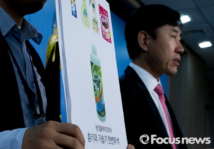 (서울=포커스뉴스) 26일 오전 서울 여의도 국회 정론관에서 하태경 가습기 살균제 특위 새누리당 간사가 홈키파 등 생활화학제품을 제조하는 헨켈홈케어코리아에서 만든 가습기 살균제 제품 '홈키파 가습기싹'과 관련 기자회견을 하고 있다.