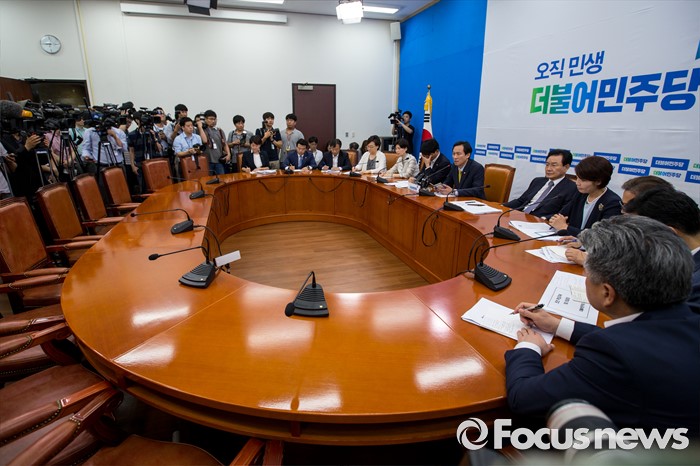 (서울=포커스뉴스) 우상호 더불어민주당 원내대표가 26일 오전 서울 여의도 국회에서 열린 원내대책회의에 참석해 모두발언 하고 있다.