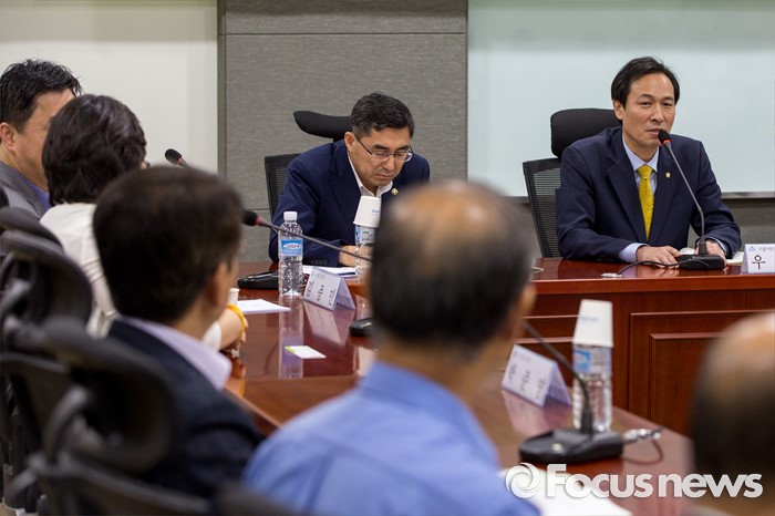 (서울=포커스뉴스) 우상호 더불어민주당 원내대표가 26일 오전 서울 여의도 국회의원회관에서 열린 '농업과 행복한 미래 창립식'에 참석해 인사말 하고 있다.