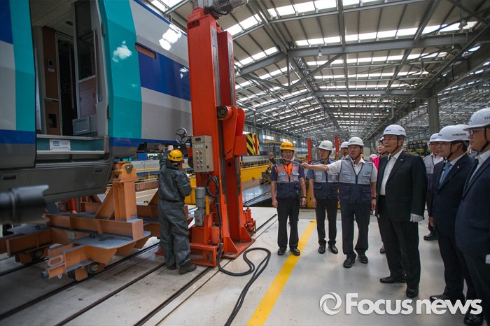 (고양=포커스뉴스) 김종인 더불어민주당 비대위 대표가 26일 오전 경기도 고양시에 위치한 수도권철도차량정비단을 방문, 관계자에게 정비중인 열차에 대한 설명을 듣고 있다.