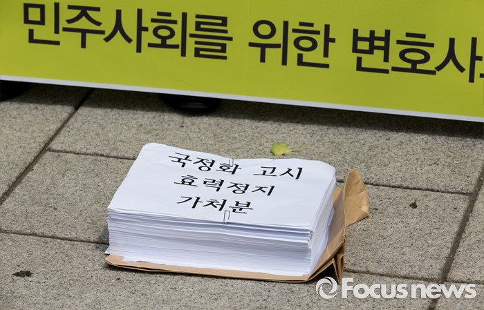 (서울=포커스뉴스) 26일 오전 서울 종로구 헌번법재판소 앞에서 열린 국정화 고시 효력정지 가처분 제기 기자회견에 가처분 신청서가 놓여있다.