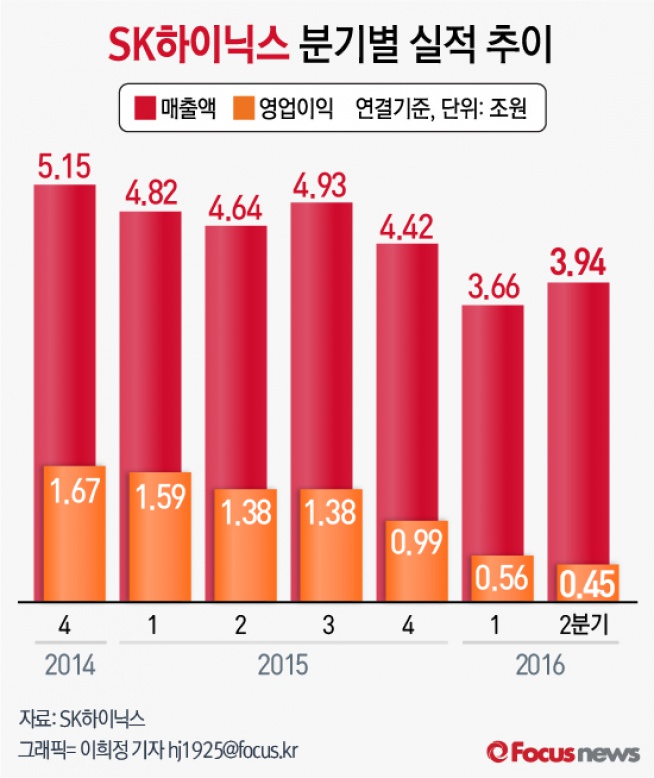SK하이닉스는 2013년 1분기 3169억원의 영업이익을 내놓은 후 3년여만에 영업이익 5000억원을 밑도는 성과를 내놨다. SK하이닉스는 2012년 3분기 영업적자를 내놓은 후 2012년 4분기에 549억7100만원의 영업이익을 올렸다.