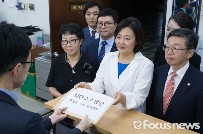 이번 집단소송법 제정안에는 총 46명의 의원들이 공동발의에 참여했다.박영선 더불어민주당 의원과 관계자들이 26일 오전 서울 여의도 국회 의안과에서 집단소송법 제정 법안을 제출하고 있다. 박 의원은 앞서 기자회견을 통해 "미국에만 거액 배상을 합의한 폭스바겐측의 행태는 현행 민사소송법 한계를 드러낸 것으로 우리 국민들의 적절한 피해배상과 신속한 권리구제를 위해 징벌적 배상제 도입과 함께 집단소송제 도입이 시급해 대표발의했다"고 전했다. 2016.07.26 박동욱 기자