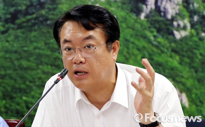 (성주=포커스뉴스) 26일 오전 경북 성주군청을 찾은 정신석 새누리당 원내대표가 성주군민들과 간담회에서 질문에 답변하고 있다.