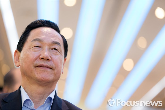 (서울=포커스뉴스) 26일 오후 서울 서초구 엘루체에서 열린 더불어민주당 서울특별시당 서초갑 정기지역대의원대회에서 전당대회 출마를 선언한 김상곤 의원이 대회 시작을 기다리고 있다.