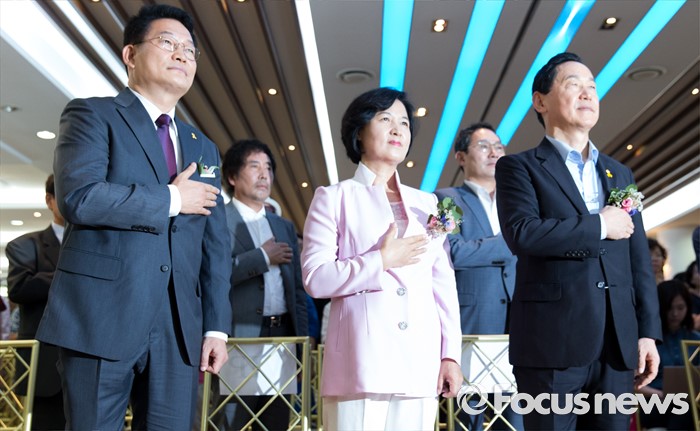| △ 국민의례하는 더불어민주당 전당대회 출마자들 |