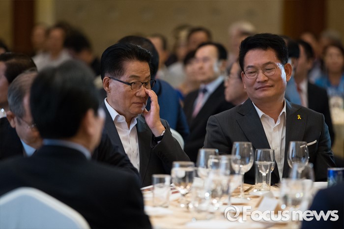 (서울=포커스뉴스) 26일 오후 서울 중구 롯데호텔에서 열린 '한중 지도자 친선의 밤' 행사에 박지원(왼쪽) 국민의당 비상대책위원장과 송영길 더불어민주당 의원이 참석하고 있다.