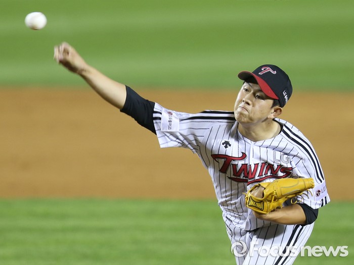 (서울=포커스뉴스) 26일 서울 잠실구장에서 열린 2016 프로야구 롯데-LG 경기 7회말 LG 투수 유재유가 등판해 투구하고 있다.