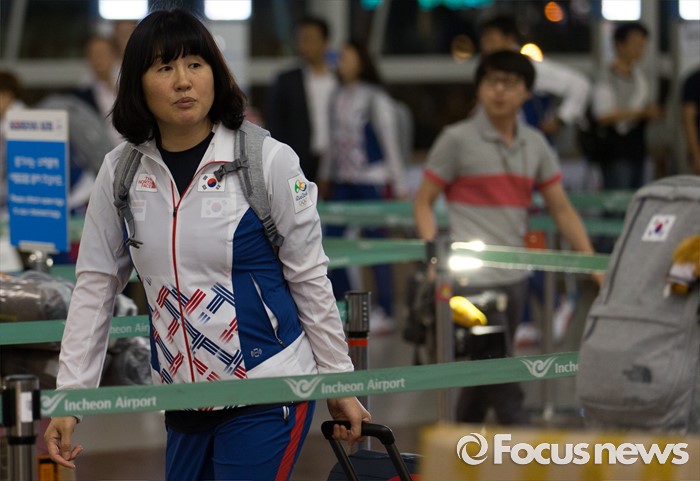 (인천공항=포커스뉴스) 남미에서 최초로 열리는 제31회 브라질 리우데자네이루 하계올림픽에 참가하는 오영란 대한민국 핸드볼 국가대표팀 선수가 26일 오후 인천국제공항에 들어서고 있다.