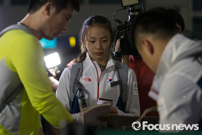 (인천공항=포커스뉴스) 남미에서 최초로 열리는 제31회 브라질 리우데자네이루 하계올림픽에 참가하는 이고임 대한민국 체조 국가대표팀 선수가 26일 오후 인천국제공항에서 출국 전 짐 정리를 하고 있다.