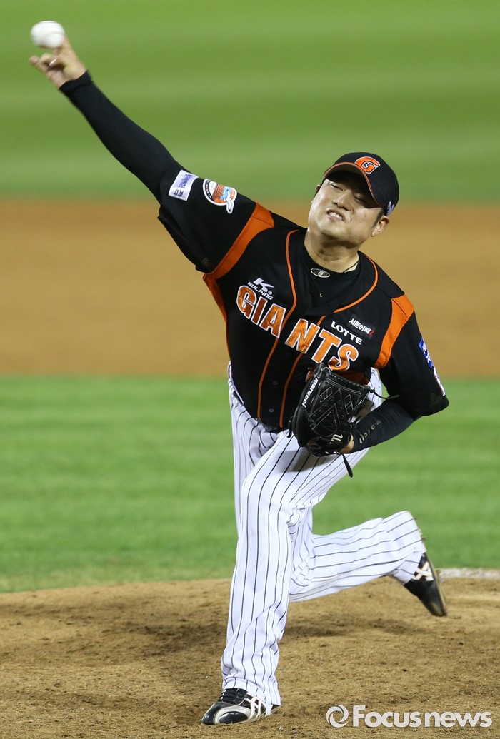 투구하는 롯데 마무리 투수 손승락