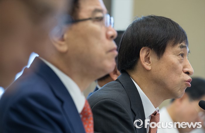 (서울=포커스뉴스) 27일 오전 서울 여의도 국회 귀빈식당에서 열린 경재재정연구포럼 조찬 간담회에 참석한 이주열 한국은행 총재가 발언하고 있다.