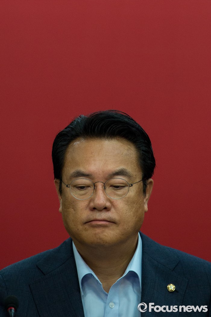 (서울=포커스뉴스) 정진석 새누리당 원내대표가 27일 오전 서울 여의도 새누리당사에서 열린 혁신비상대책위원회의에 참석해 모두발어을 마친 뒤 생각에 잠겨 있다.