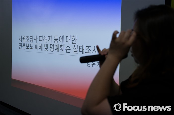 (서울=포커스뉴스) 27일 오전 서울 중구 4·16세월호 참사 특별조사위원회에서 세월호 참사 피해자에 대한 언론보도 피해 및 명예훼손 실태 조사 결과 발표와 토론회를 하고 있다.