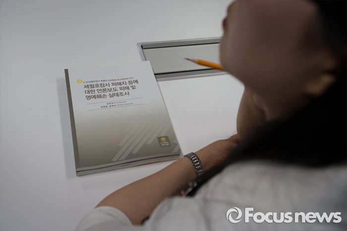 (서울=포커스뉴스) 27일 오전 서울 중구 4·16세월호 참사 특별조사위원회에서 세월호 참사 피해자에 대한 언론보도 피해 및 명예훼손 실태 조사 결과 발표와 토론회를 하고 있다.