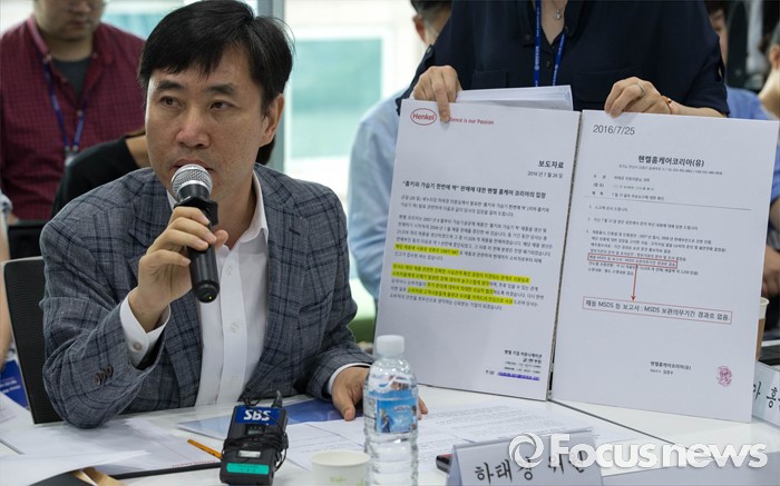 (서울=포커스뉴스) 27일 오전 서울 영등포구 여의도 옥시레킷벤키저 본사에서 국회 가습기살균제 국조특위의 현장조사가 열리고 있다. 가습기 특위는 옥시와 SK 케미칼, 애경, 이마트를 방문해 가습기 살균제의 제조 및 유통 판매 과정에서의 과실을 조사한다고 밝혔다.