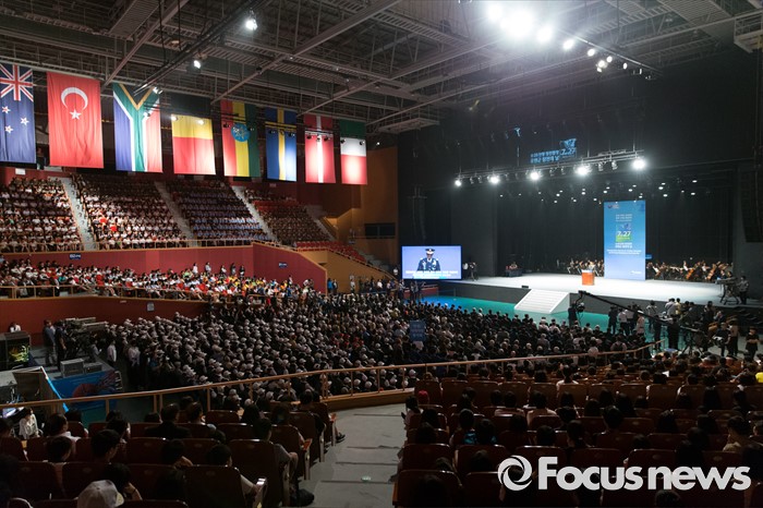 (서울=포커스뉴스) 27일 오전 서울 송파구 올림픽공원 올림픽홀에서 정전협정 63주년 및 유엔군 참전의 날 기념식이 열리고 있다. 1953년 7월 27일은 정전협정이 체결된 날로, 정부는 해마다 이를 기념하는 행사를 열어왔다