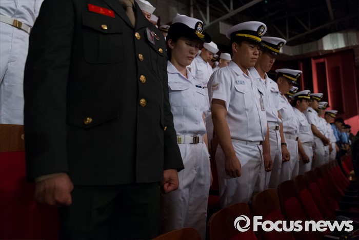 (서울=포커스뉴스) 27일 오전 서울 송파구 올림픽공원 올림픽홀에서 열린 정전협정 63주년 및 유엔군 참전의 날 기념식에서 장병들이 순국선열 및 호국영령에 대한 묵념을 하고 있다.