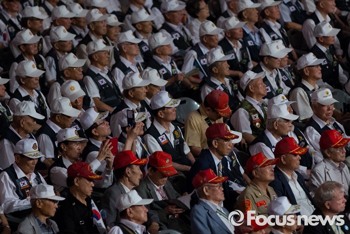 (서울=포커스뉴스) 27일 오전 서울 송파구 올림픽공원 올림픽홀에서 열린 정전협정 63주년 및 유엔군 참전의 날 기념식에서 6·25 전쟁 참전용사들이 자리에 참석해있다.