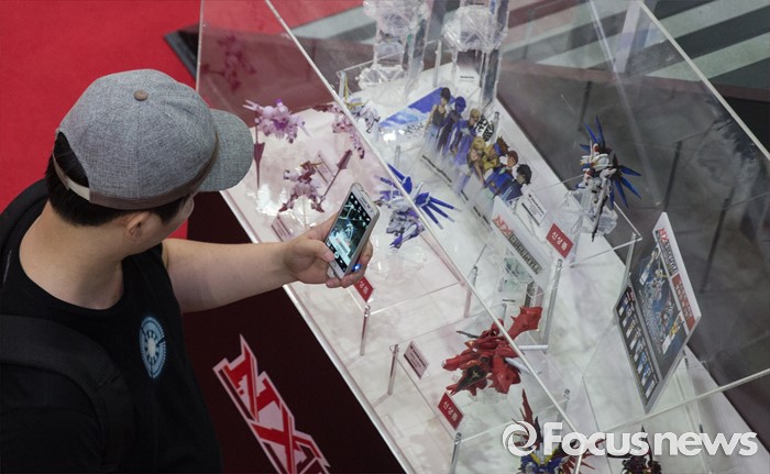 (서울=포커스뉴스) 27일 오전 서울 강남구 코엑스에서 열린 '건프라 엑스포 2016'을 찾은 한 관람객이 전시품을 촬영하고 있다.
