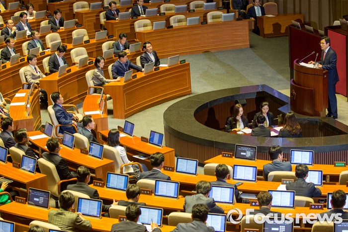 (서울=포커스뉴스) 황교안 국무총리가 27일 오후 서울 여의도 국회에서 열린 344회 국회(임시회) 3차 본회의에 참석해 추가경정예산안과 관련한 시정연설 하고 있다.