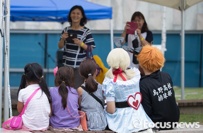 (부천=포커스뉴스) 27일 오후 경기도 부천시 한국만화박물관에서 열린 '제19회 부천국제만화축제'에 참여한 코스어들이 어린이와 사진촬영을 해주고 있다.