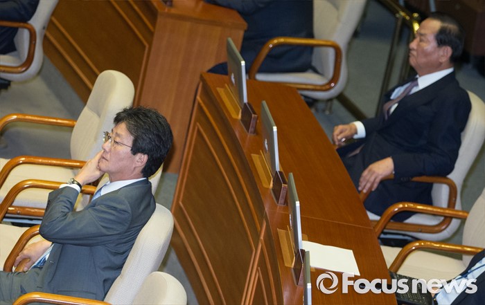 (서울=포커스뉴스) 27일 오후 서울 여의도 국회에서 열린 344회 국회(임시회) 3차 본회의에 유승민(왼쪽), 서청원 새누리당 의원이 자리하고 있다.