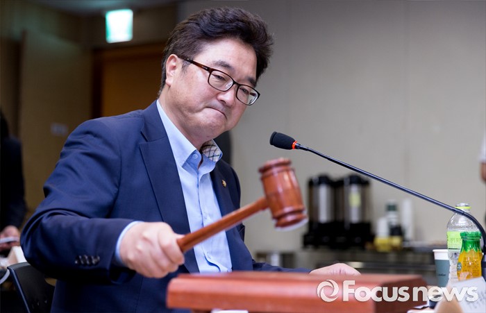 (분당=포커스뉴스) 27일 오후 경기도 성남 분당구 SK케미칼 본사에서 열린 가습기살균제 사고 진상규명과 피해구제 및 재발방지 대책마련을 위한 국정조사특별위원회 현장조사에서 우원식 위원장이 의사봉을 두드리고 있다.