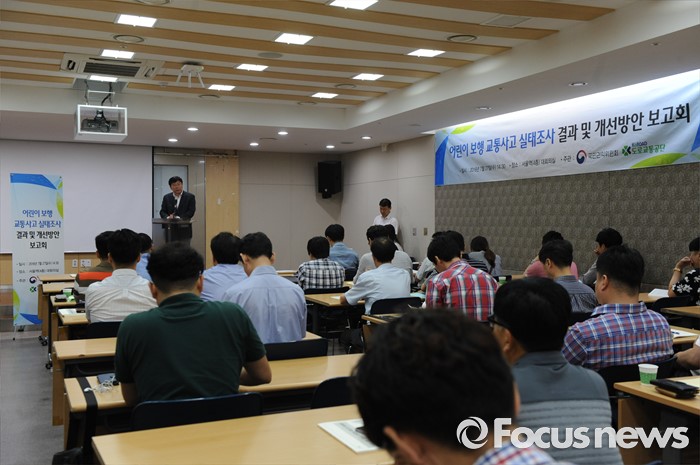 (서울=포커스뉴스) 27일 오후 서울 용산구 서울역 대회의실에서 열린 어린이 보행 교통사고 개선대책 보고회에 국민권익위원회 관계자가 시설개선과 정책추진에 대해 보고하고 있다.