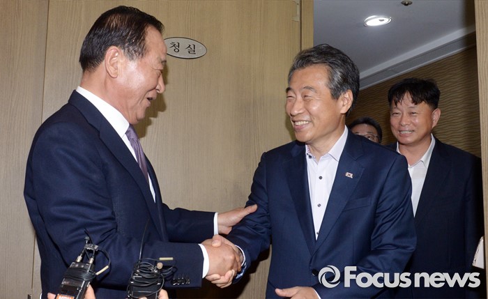 | △ 인사하는 서청원-정종섭 |