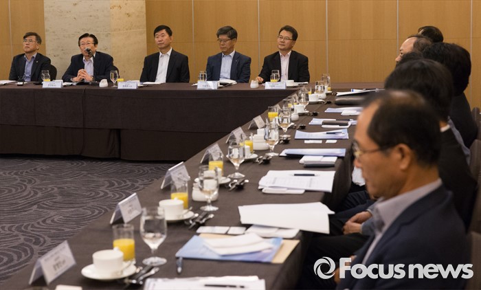 (서울=포커스뉴스) 28일 오전 서울 서초구 쉐라톤 서울 팔래스 강남 호텔에서 열린 '책임있는 소비문화 조성을 위한 기업인과의 간담회'에 참석한 한견표(왼쪽 두번째) 한국소비자원 원장이 모두발언 하고 있다.