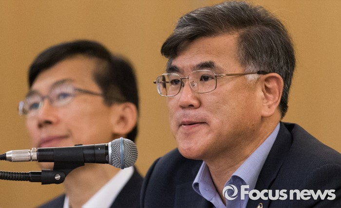 (서울=포커스뉴스) 28일 오전 서울 서초구 쉐라톤 서울 팔래스 강남 호텔에서 열린 '책임있는 소비문화 조성을 위한 기업인과의 간담회'에 참석한 김학현(오른쪽) 공정거래위원회 부위원장이 모두발언 하고 있다.