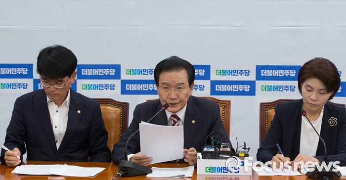 (서울=포커스뉴스) 28일 오전 서울 여의도 국회에서 열린 더불어민주당 정책조정회의에 참석한 변재일 정책위의장이 모두발언을 하고 있다.