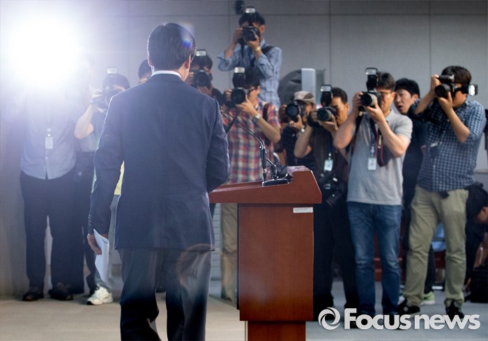 (서울=포커스뉴스) 이종걸 더불어민주당 의원이 28일 오전 서울 여의도 국회에서 전당대회 당대표 출마 기자회견을 위해 입장하고 있다.