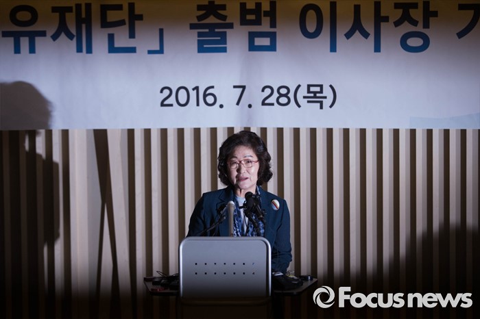 (서울=포커스뉴스) 28일 오후 서울 서대문구에 위치한 '화해·치유 재단' 사무실 인근에서 열린 기자간담회에 참석한 김태현 이사장이 재단 운영 방안에 대해 설명하고 있다.