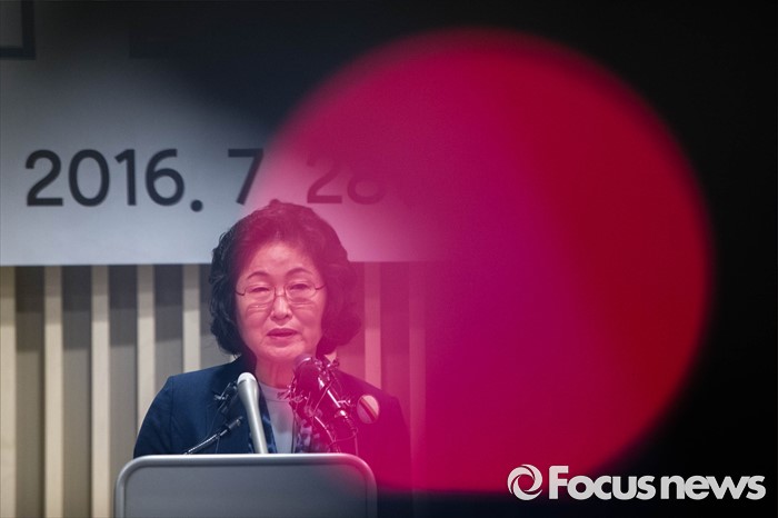 (서울=포커스뉴스) 28일 오후 서울 서대문구에 위치한 '화해·치유 재단' 사무실 인근에서 열린 기자간담회에 참석한 김태현 이사장이 재단 운영 방안에 대해 설명하고 있다.