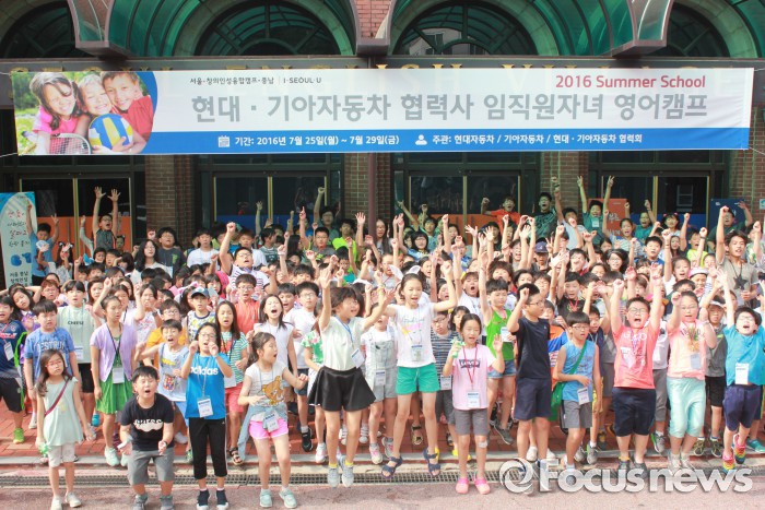 (서울=포커스뉴스) 현대·기아자동차는 25일부터 29일까지 서울 송파구 소재 서울영어마을 풍납캠프에서 협력사 임직원 자녀를 위한 '2016 여름 영어캠프(썸머스쿨)'를 진행한다.