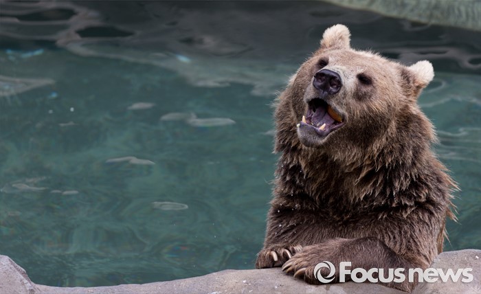 (과천=포커스뉴스) 28일 오후 경기도 과천 서울동물원에서 불곰이 얼음과일을 먹고 있다.