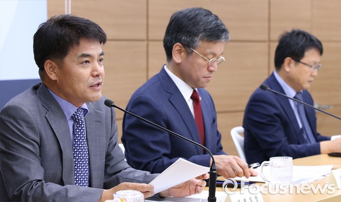(세종=포커스뉴스) 최영록 기획재정부 세제실장이 지난 25일 오후 세종시정부세종청사 기재부 브리핑실에서 2016년 세법개정안 브리핑을 마치고 취재진의 질문에 답변하고 있다. 왼쪽부터 최영록 세제실장, 최상목 기획재정부 제1차, 안택순 조세총괄정책관.