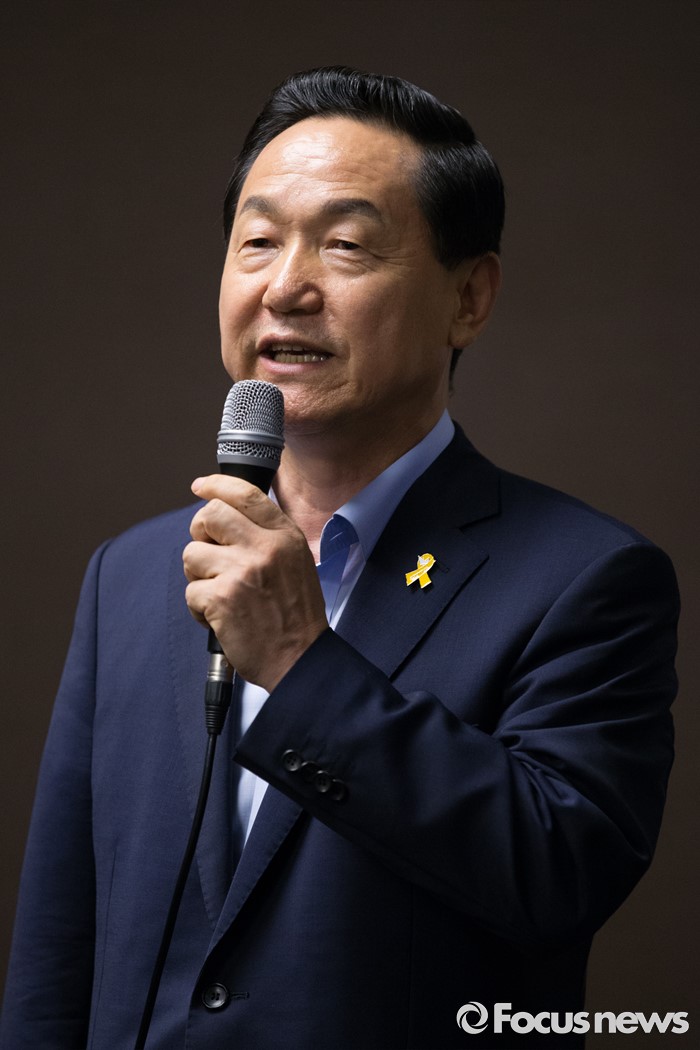 (서울=포커스뉴스) 더불어민주당 김상곤 전 혁신위원장이 28일 오후 서울 성동구 레노스블랑쉬 웨딩홀에서 열린 서울 중구·성동갑 지역대의원대회에서 발언하고 있다.