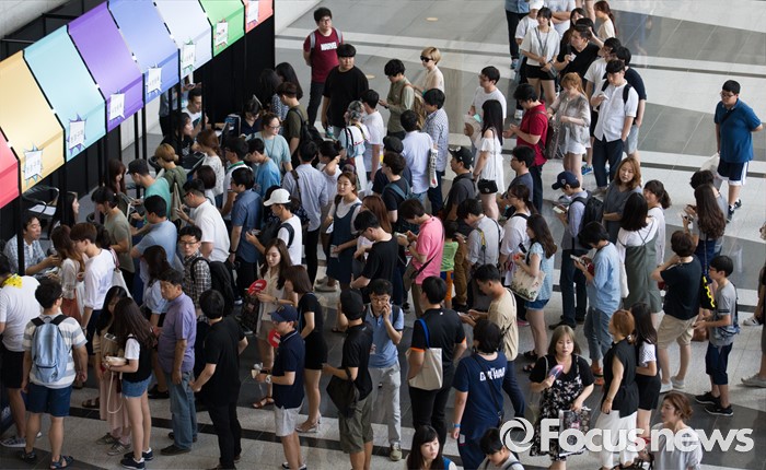 (서울=포커스뉴스) 28일 오후 서울 강남구 코엑스에서 열린 2016 서울키덜트페어를 찾은 시민들이 줄을 서 표를 구매하고 있다. 키덜트페어는 7월 28일부터 31일까지 나흘간 진행되며 만화, 영화, 장난감 캐릭터 등이 다양한 모습으로 전시되어 있다.