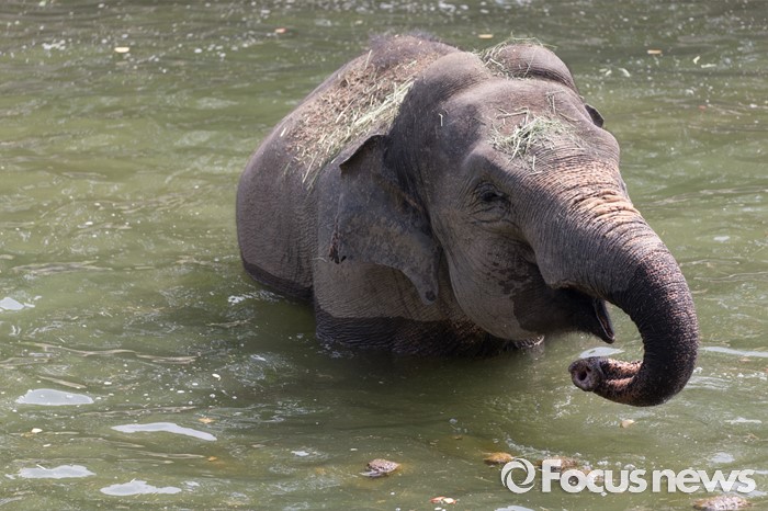 (과천=포커스뉴스) 28일 오후 경기도 과천 서울동물원에서 아시아코끼리가 물속에서 더위를 식히고 있다.